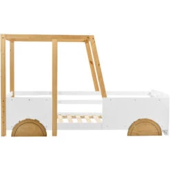 Children Car Bed Frame Children’s Bed With Wheels Jeep Bed Pine Frame, White + Natural, 90x190cm