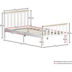 Milan 3ft Single Solid Pine Wood Bed Frame, High Foot End, White-&-Pine, 190 X 90 Cm