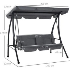 Casaria 2 Seater Garden Swing Bench 140cm With Canopy Outdoor Patio Furniture Anthracite