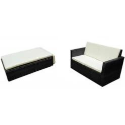 2 Piece Garden Lounge Set With Cushions Poly Rattan Black VidaXL