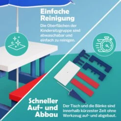 Children’s Wooden Rainbow 2 In 1 Kids Picnic Table And Parasol Set