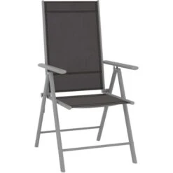2 X Multi Position High Back Reclining Garden / Outdoor Folding Chair In Black And Silver