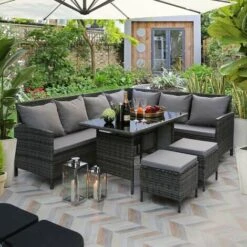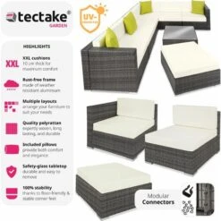 Rattan Garden Set Marbella 7 Seats, 1 Table – Garden Sofa, Garden Corner Sofa, Rattan Sofa – Grey