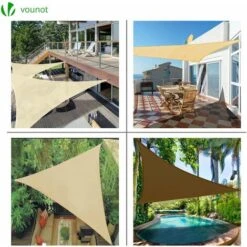 VOUNOT HDPE Sun Shade Sail Triangle With Fixing Kits, 5x5x5M, Ivory