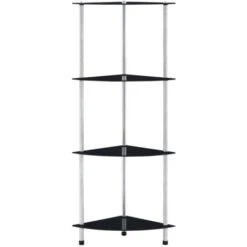 3 Tier Oak Effect Table Corner Storage Shelves Unit Black Metal Legs