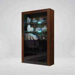 Modern Sideboard Display Cabinet Cupboard TV Stand Living Room High Gloss Doors – Walnut & Black