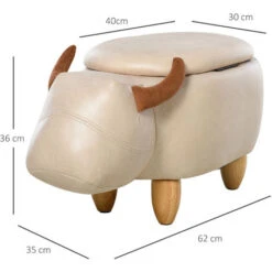HOMCOM Buffalo Storage Stool Cute Decoration Footrest Wood Frame Padding Ivory
