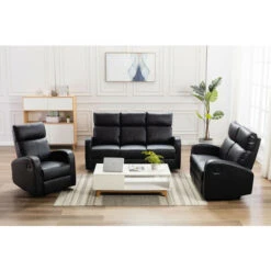 CAESAR HIGH BACK ELECTRIC BOND GRADE LEATHER RECLINER 3+2+1 SOFA ARMCHAIR SET BLACK 1 SEATER