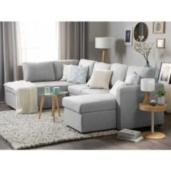 U-Shaped Sofa Bed Light Grey Modern 5 Seater Storage Fabric Upholstered Karrabo