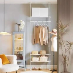 Metal Clothes Rack Antique With Shoe Stand – Coat Stand, Clothes Rack, Coat Hanger Stand – White