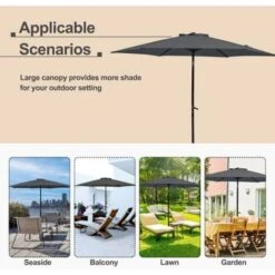 2m Lightweight Black Aluminium Garden Parasol With Tilt Mechanism