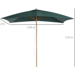 Outsunny Wooden Garden Parasol Sun Shade Patio Umbrella Canopy Green
