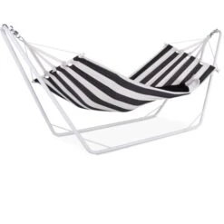 Hammock Metal Frame 200x80cm Cream Blue Portable Patio Garden Free Standing Camping Swing Black