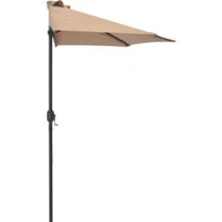 This elegant balcony parasol is perfect to create some shade and protect you from the sun’s harmful UV rays. Made of UV protective and anti-fade polyester, the parasol cover provides you with optimum protection against the sun and is easy to clean. With the pole diameter of 38 mm, it could be mounted on the stand or in the middle of tables with holes. Its half round shape design also adds to the umbrella’s unique charm. The strong aluminium pole, along with the 5 sturdy steel ribs, makes the parasol very stable and durable. The garden umbrella can be easily opened and closed thanks to the crank mechanism. The item is easy to assemble. Please note that parasol stand is not included in delivery.we recommend treating the umbrella fabric with a waterproofing spray if it is subjected to heavy rainfall.