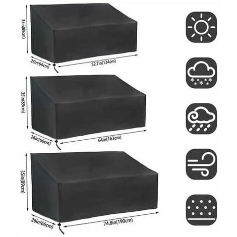 Perfect Size: 2 seater- 134x66x89cm(LxWxH);Please check your furniture dimensions.It is good for protecting from outdoor elements like stronger winds, rain, sun, snow, leaves, dust