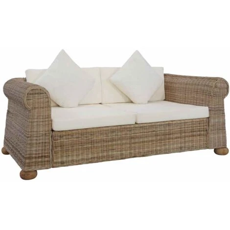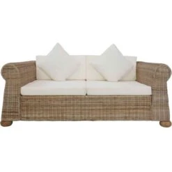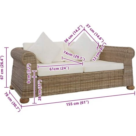 Thanks to the genuine rattan fitrit material, the sofa is easy to clean, hardwearing and suitable for daily use. It features a sturdy wooden frame, which is highly durable and stable. The thick seat and back cushions and pillows are considerably conformable and also washable thanks to their removable covers. In addition, the wide armrests add to your seating comfort.