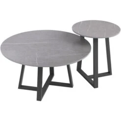 Minimalist look side end tables to complement Nordic-style, farmhouse, industrial home decor. It is made by sintered stone tabletop, more unique than marble pattern, natural texture and appeal, hard toughness than moorstone, resistant to scratch and break.