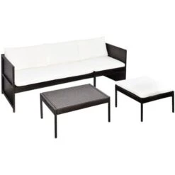 This rattan lounge set combines style and functionality. It will be the focal point of your garden or patio. The rattan lounge set is hard-wearing enough to be used outdoors year round.