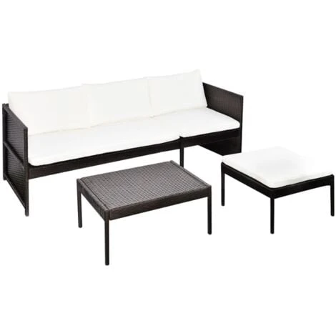 Delivery includes 1 three-seat sofa, 1 stool, 1 coffee table, 3 seat cushions and 3 back cushions.