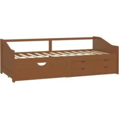 The sofa bed is made of solid pinewood, making it sturdy and stable. The sturdy slats also offer the needed support and comfort. Additionally, it also includes 5 bed drawers for storing folded clothes, toys, etc.