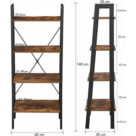 ? Large storage space: 4-tier open shelves is convenient for you to store books, potted plants, photo albums or kitchen supplies in an orderly manner. The ladder design takes full use of vertical space without taking up much floor space, ideal for small spaces.