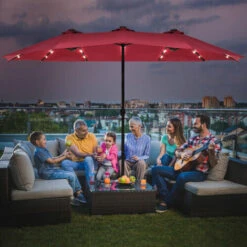 Extra-Large Shade Area: This 460x270cm wide solar patio umbrella features a double-sided design, which gives you maximum shelter that brings you double shades for your outside enjoyment. Additionally, this patio umbrella with large shade is great for garden, backyard, poolside and beach.