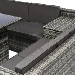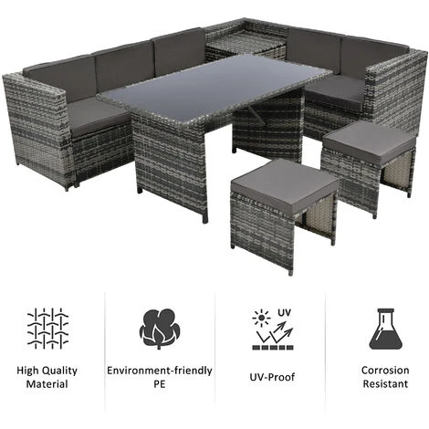 Use this 7-Seater Rattan Garden Furniture Set to help transform your backyard or garden into a relaxing space ! This 7-seater Rattan Dining Sofa Set consists of a 5-seater L-shaped sofa with a storage box, a dining table and 2 stools. You can relax, gather, chat and have a good time outdoors with family and friends.