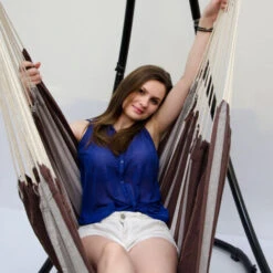 We did not spare on materials! The fabric is made of extremely durable natural cotton (320 g / m²), delicate even on direct contact with your skin. The hammock, which is 185 cm long and supports a maximum weight of 150 Kg, not only offers the possibility for an adult to comfortably lay down but it also provide enough room for swinging together for e.g with your child.