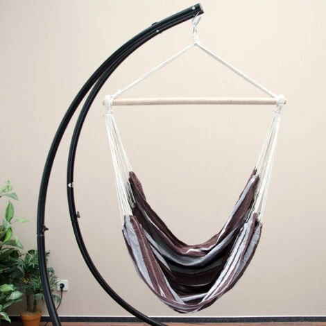 The assembly is fast and easy. The solid branch of a tree in the garden, a hook screwed in the ceiling and a carabiner or a support for hanging chairs (not included) are enough to hold up our hammock.