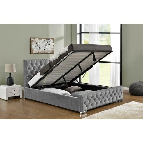 Our Arya fabric ottoman Super King bed frame is available in silver chenille fabric