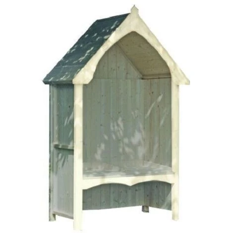 The Balsam Arbour is classically styled with a timber clad apex roof, attractive detailed facia boards and is fully enclosed on two sides for greater comfort. The arbour easily accommodates 2 people. Constructed from top quality pressure treated timber for a longer life, the Balsam enables you to relax and admire your garden. Easy to assemble it makes a wonderful addition to your garden. Manufactured in the UK from High Northern European certified timber. Dimensions shown are for the exterior wall of the building. (Imperial measurements are rounded so please refer to the metric sizes for accuracy). Supplied in its natural pressure treated finish, painted model shown is for illustration only.