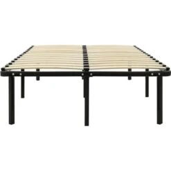 The bed frame has a solid construction made of metal and a slatted base is included. The sturdy poplar wood slats offer the needed support and are highly comfortable. With all these combined features, you will certainly have a good night’s sleep! The bed frame needs assembly.