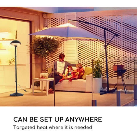 The blumfeldt Heat Guard Blackline radiant heater can be set up flexibly anywhere, warming you and your guests quickly and efficiently with up to 1500 watts. Thanks to the IR ComfortHeat technology, the heat is released specifically to the people in the vicinity of the heater and not to the surrounding air. Enjoy cosy warmth from the first second! With a pull rope, you can choose between the two heat levels – 750 or 1500 watts – in a matter of seconds, thus easily responding to the needs of your guests. Plan dinner on the balcony or parties in the garage without worrying about the temperature: immediately after switching on the infrared heater, it generates a pleasant, cosy and safe warmth without a long warm-up phase. Robustly made of stainless steel, the blumfeldt Heat Guard Blackline radiant heater is not only stable, but also a real visual highlight. An extension tube for the stand enables the height to be adjusted by 50 cm. For safe use outdoors, the housing is splash-proof in accordance with IP34 and can also be used on damp evenings without any problems.