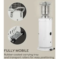 Four castors make it easy to move, while the practical protective cover shields the blumfeldt Heatwave Gas Radiant Heater from wind and weather.