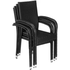 Easy-care garden chairs with comfortable rounded armrests that can be stacked to save space.