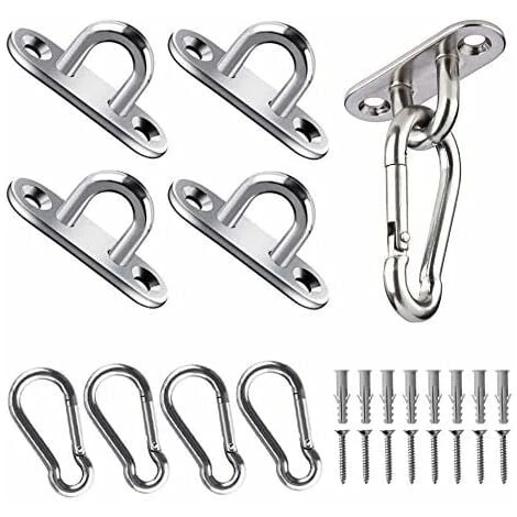 【Contenu】 4 plaque à œillets en acier inoxydable et 4 mousquetons en acier inoxydable, avec 8 vis et 8 bouchons en caoutchouc.