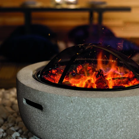 This Charles Bentley 60cm Round Magnesia Fire Pit is a stylish and modern piece that would look ideal in your garden or outdoor space. It’s light weight which makes it easy to move and store away and has a mesh cover for added safety. This fire pit is a great addition to have family gatherings around on a late summers evening or in the winter months for toasting marshmallows and keeping you warm.