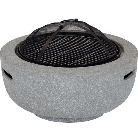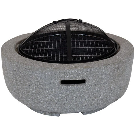 Charles Bentley 60cm Round Magnesia Fire Pit With Mesh Cover Cooking Grill