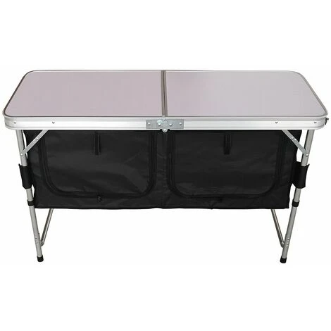 Ideal for family camping trips this summer, this large camping storage unit is perfect for storing supplies, cooking equipment, or clothing. Featuring one large table and two storage compartments neatly tucked underneath, there’s plenty of space to prepare meals or store your belongings. Crafted from a durable aluminium frame, this unit is easy to assemble and easily folds down for compact storage.