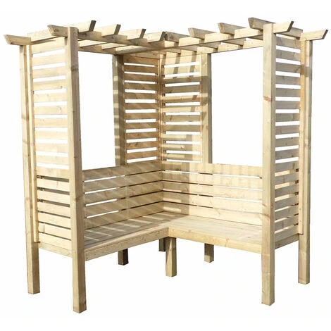 This contemporary corner arbour provides stylish seating for your garden or patio.