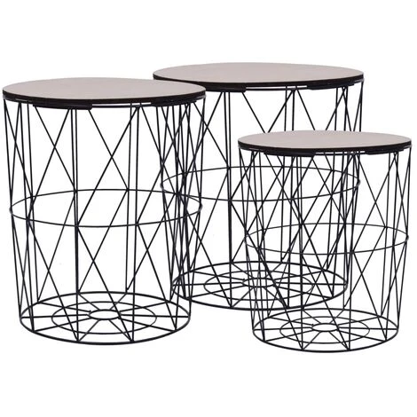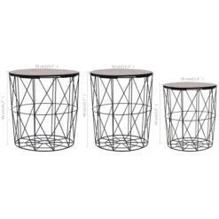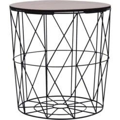 The solid wood tabletop provides a smooth and stable surface on which you can place drinks, vases or other decorative items. By removing the top, you turn the side table into a storage basket. Moreover, the smaller table can be placed inside the larger one to save space. The strong powder-coated metal frame adds to the robust construction as well as an industrial look.