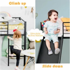 Are you looking for a fun bed frame that enriches your little one’s bedtime and makes the room a joyful playground? Then take a look at this kids loft bed. The mid sleeper bed frame features a unique slide design, together with the built-in ladder, allowing your little one to climb up, slide down, and play massively. At the same time, underside of the bed also reserves enough space, which is convenient for storing children’s clothes and toys or giving children enough space to play. And the raised bed is surrounded by 30cm-tall guardrails, which ensure children’s safety during sleeping time. In addition, the heavy-duty steel construction is rather sturdy and is able to support up to 150 kg.