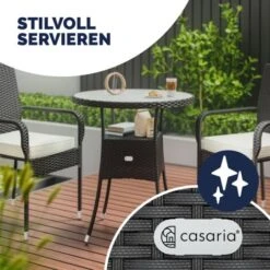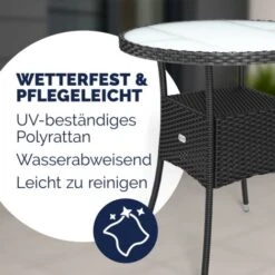 The table is made from UV-light-resistant poly rattan – so you profit from it for a long time.
