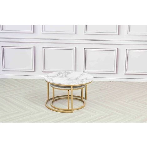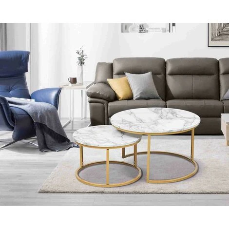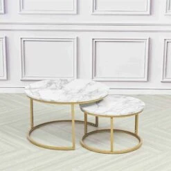 The best kinds of tables are the ones that are multipurpose, such as the ones featured in our Round Nesting Coffee Table Set. Both of the tables included in this two piece furniture set have been fitted with a smooth round top in your choice.It is made out of a durable MDF top, while the golden chrome legs attached to the bottom of each table are made out of a premium quality steel.
