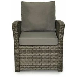- Evre Rattan Outdoor Garden Furniture Set comes with a Coffee Table, Two Comfortable Single Chairs along with a Two-Seater Sofa