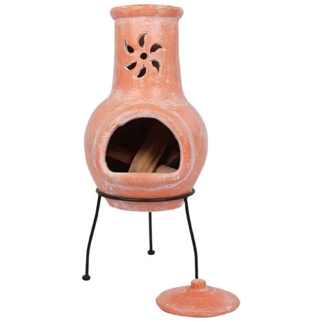 - Including a solid, black powder-coated steel stand and a clay chimney lid