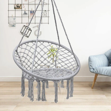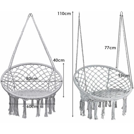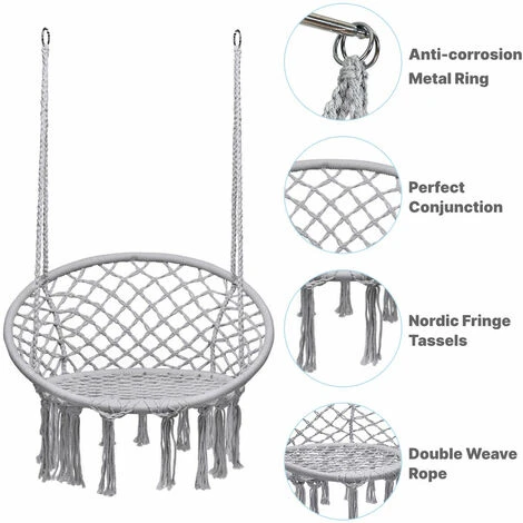 Chic & Nordic Style: Stylishly crafted from macrame net chair pattern with fringe tassels, this hammock chair is blended in the Nordic or bohemian feel to show the retro and stylish style, and serve as a unique, charming decoration piece.