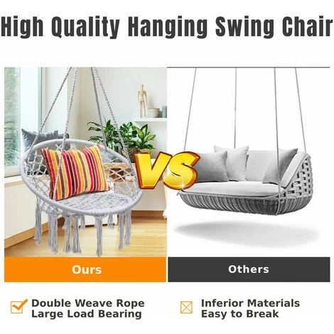 Sturdy & Durable Craftsmanship: Handmade from thick cotton rope and steel frame, this hanging swing chair can support up to 150 kg weight. Multi-layer woven rope builds the merely zero extension and the perfect conjunction between chair and rope assures that it won’t tear while swinging.