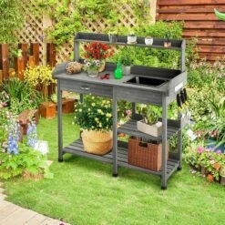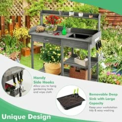 Our wooden potting bench will make gardening an easy thing.