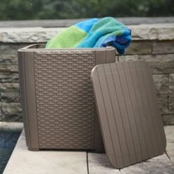 This Luzon side table is made of weather-resistant and maintenance-free plastic PP (polypropylene) with a modern flat rattan look design and stylish Rezolith elements with a faux wood look. You will never have to worry about these maintenance-free materials discolouring, rusting, rotting or peeling, which makes the side table ideal for daily outdoor use. It has a convenient storage compartment for all any items that you would like to keep close by.